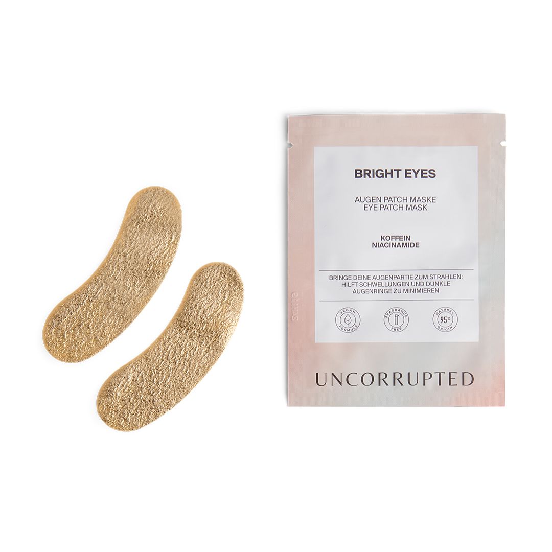 Unsere Augen Patch Maske kombiniert die kraftvolle Wirkung von Tetrapeptiden-5, belebendem Koffein, Niacinamid und intensiv feuchtigkeitsspendendem Hyaluronsäurekomplex, um die Augenpartie in wenigen Minuten sichtbar zu erfrischen und zu revitalisieren. - Bringt empfindliche Haut um die Augen wieder zum Strahlen und mindert dunkle Schatten - Schwellungen im unteren Augenbereich werden minimiert - Verleiht der Augenpartie ein frischeres und strahlenderes Aussehen