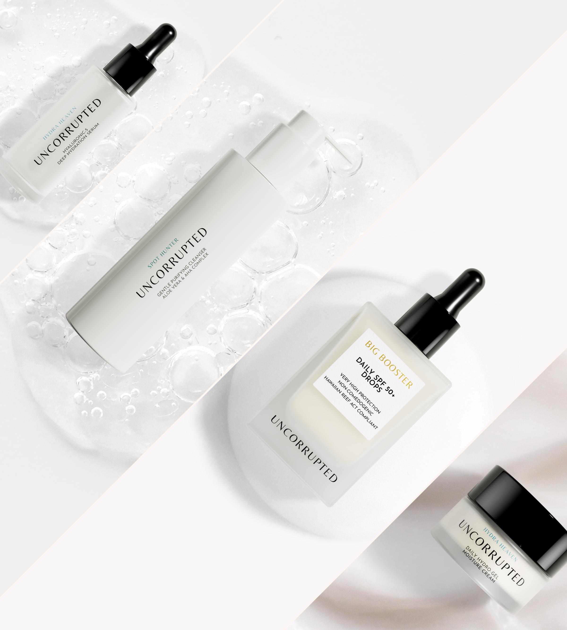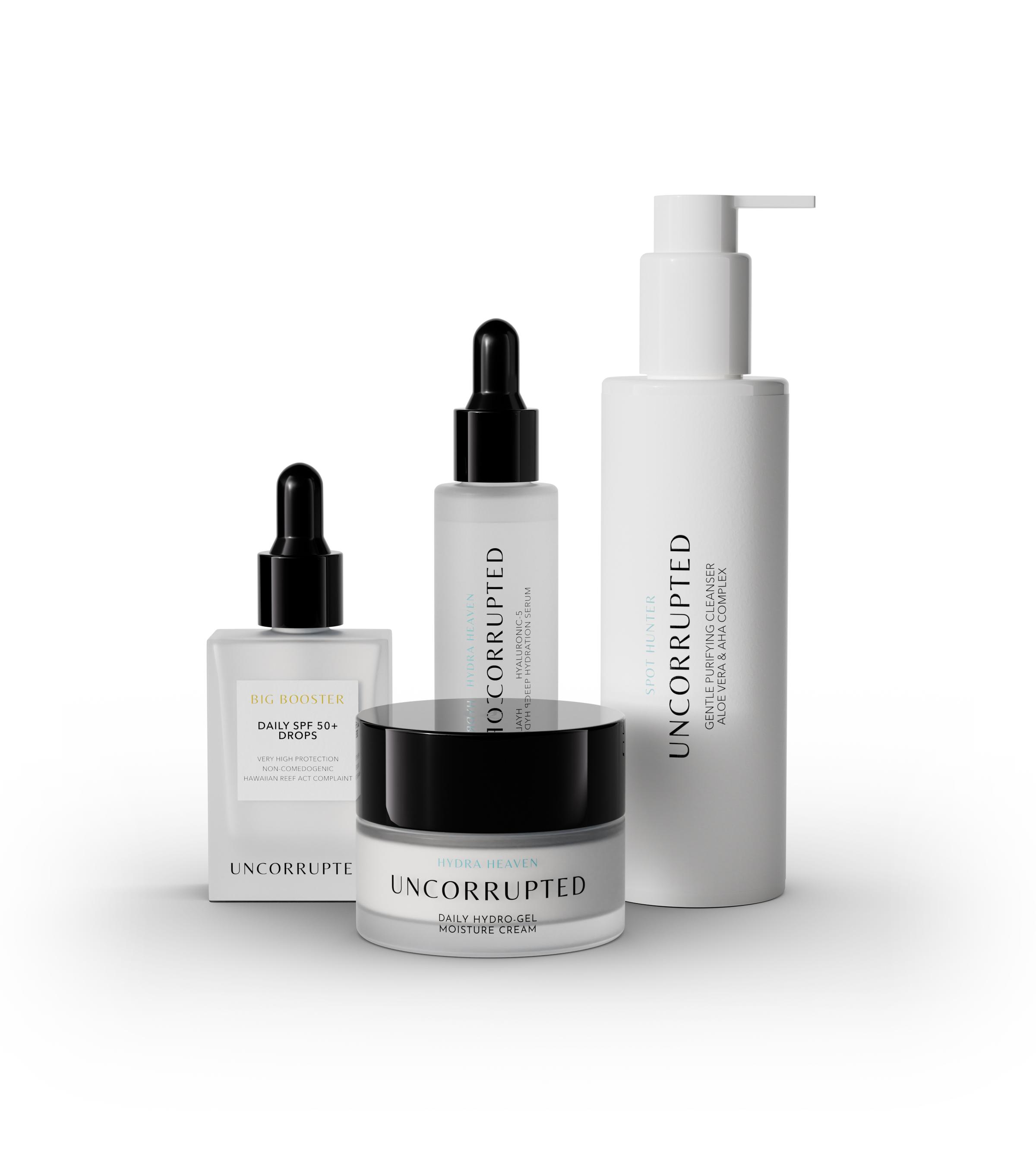 Start your beauty game now: it's never too late for beautiful skin. For a complete beauty routine for skincare novices, we have combined our bestsellers in this kit. Our starter kit consists of ✓ Clarifying Facial Cleanser with AHA Complex, 200ml ✓ Moisturising Serum with 5x Hyaluronic Acid and Regenerating Aloe Vera, 30ml ✓ Oil-free aloe vera gel cream, 50ml ✓ Ultralight multi-purpose SPF50+ drops for use alone or with your favourite skincare and make-up, 30ml