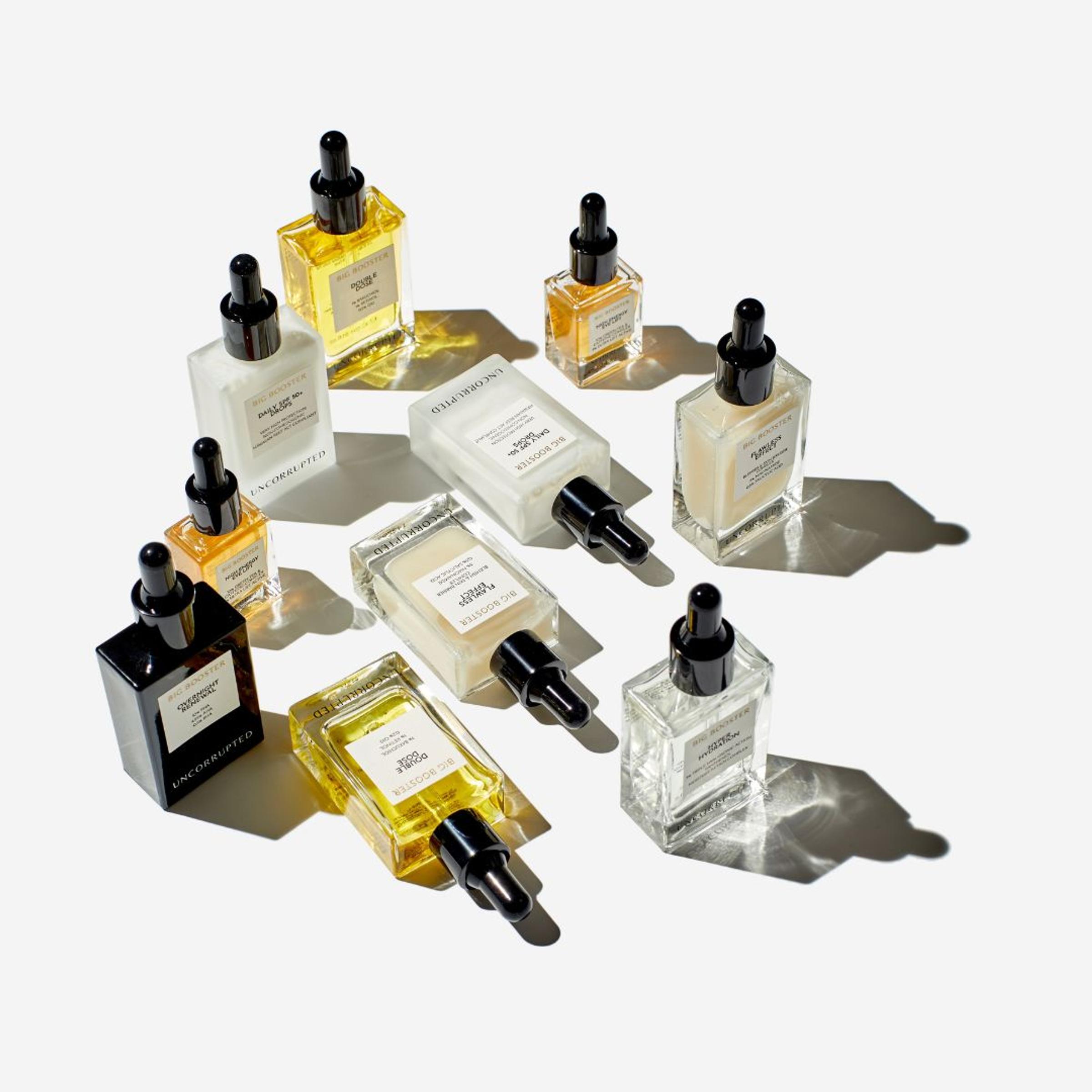 1. Overnight Renewal, 30ml: Leistungsstarkes, aber dennoch sanftes Peeling mit 10% PHA, 4,25% AHA, 0,5% BHA. Befreien über Nacht von abgestorbenen Hautzellen, verbessern das Hautbild sichtbar, speichern Feuchtigkeit und reduzieren dunkle Flecken. Entwickelt in einer der renommiertesten Research- & Development-Facilities der Schweiz. 2. Liftendes Koffein Augenserum, 15ml: Leistungsstarke Wirkstoff-Booster-Drops für die Augenpartie mit 10% Grüntee-Koffein-Komplex und 2% Ultra-Lift-Aktivstoff. Gegen müde Augen und Mimikfältchen. Von Schweizer Wissenschaftlern entwickelt. 3. SPF Serum, 30ml: Ultraleichte, multifunktionale SPF50+ Drops für die einzelne Anwendung oder zum Kombinieren mit Deiner/m Lieblings-Pflege/Make-up. Entwickelt in der Beauty-Hochburg Italien.